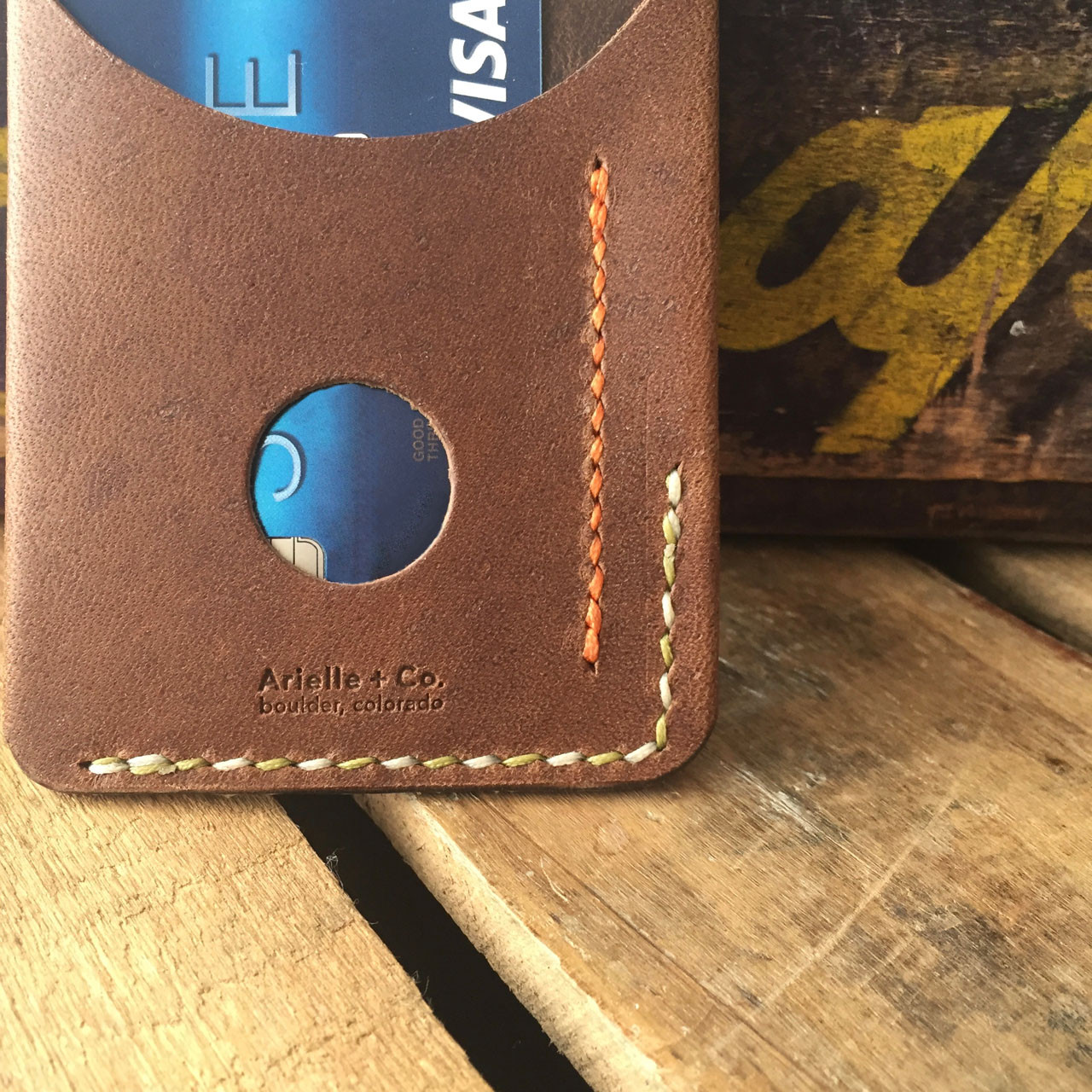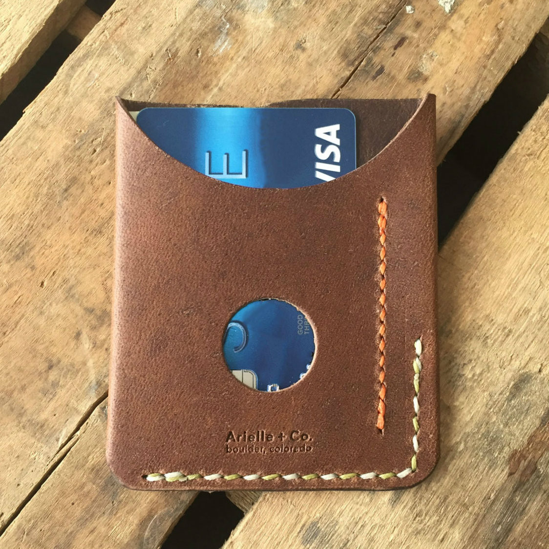 Handmade from a single piece of Horween Chromexcel, and fashioned to fit comfortably in a front pocket (or just about any pocket). Easily handles cash + 6 cards.