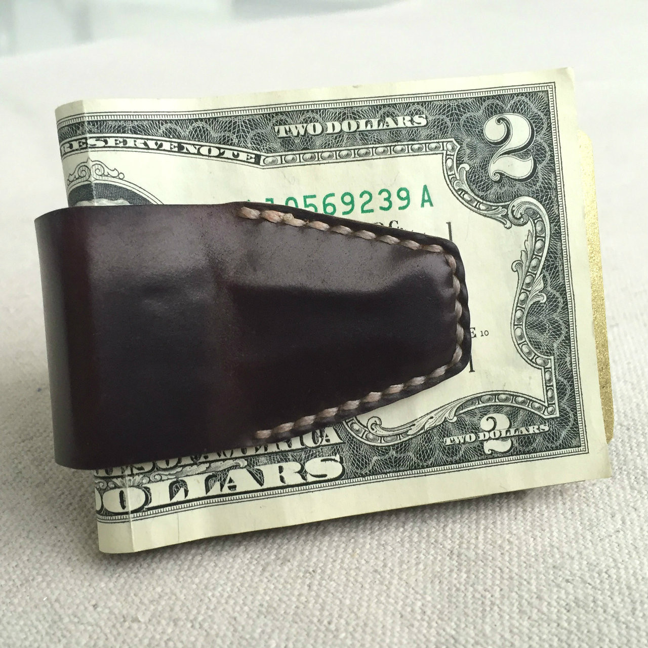 Binder clip + Horween Shell Cordovan = Pretty Awesome. A bit more fancy than your asparagus rubberband. Won't scratch your phone like a naked binder clip. Perfect.